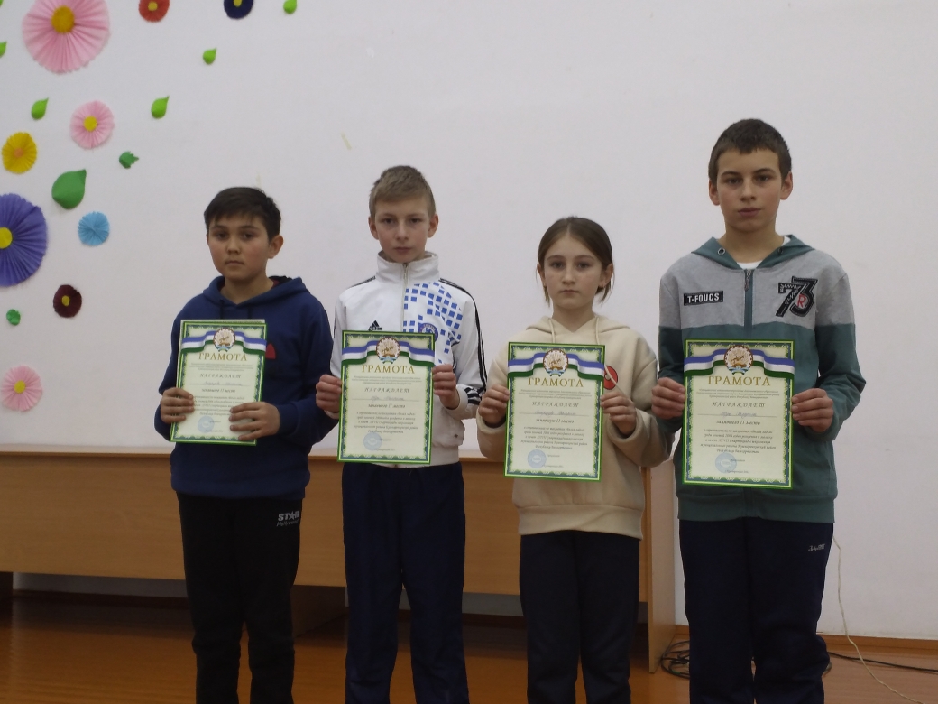 По итогам проведённых игр были определены лучшие игроки: Ситдикова Ралина, Вдовин Эмиль (МБОУ СОШ с.Калтаево), Афанасьев Кирилл, Арсланов Данис (МБОУ СОШ с.Шарипово).