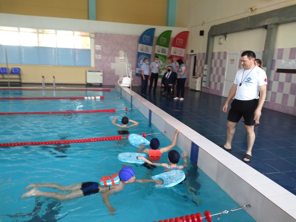 В рамках визита, гости ознакомились с материально-технической базой учреждения и реализацией программы «Всеобуч по плаванию» в бассейне.