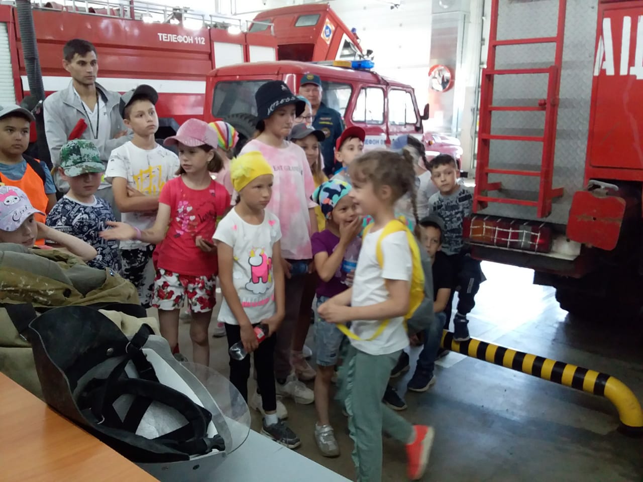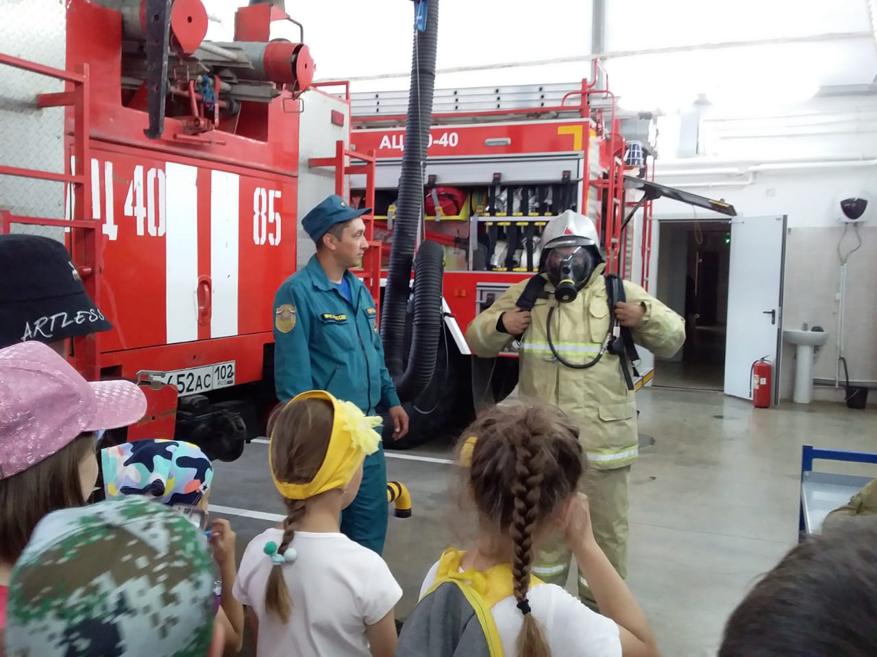 Пожарные показали ребятам предметы боевой одежды, пожарно-спасательное